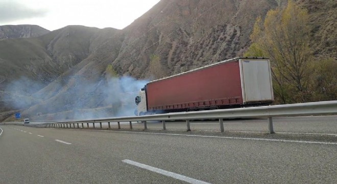 Erzurum-Artvin Karayolu'nda seyir halinde olan Özbekistan plakalı tır, sürücüsünün dikkati sayesinde yanmaktan son anda kurtuldu.