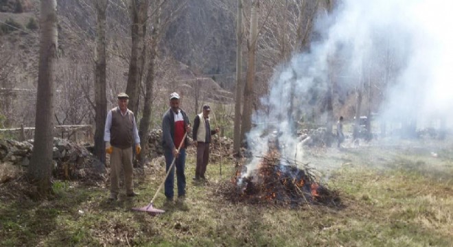 Aşağı Çamlı’da imece usulü mezarlık temizliği