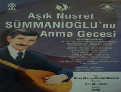 Bursa Barış Manço Kültür Derneğinde 21 Şubat 2009 Cumartesi günü gerçekleştirilecek anma gecesinin yönetmenliğini Aşık Temel Turabi yapacak. Şeref Taşlıova, Hüseyin Sümmanioğlu, Mevlüt İhsani, Mustafa Ruhani, Sıtkı Eminoğlu, Mustafa Aydın, İsrafil Taştan, Cemal Divani, Aşık Kaptani, Aşık Zamani, Ali Serhati, Zakir Algül, Turan Yıldırım, Baki Çetin, Rasim Saraç, Zafer Kazancı, Yılmaz Pala, Eyüp yıldız, Metin Çetinkaya, Eyüp Demirel ve Nusret Toruni’nin oğlu Köksal Sümmanioğlu’nun katılacağı geceye vatandaşların büyük ilgi göstermesi bekleniyor.