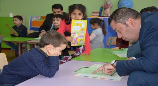 İlçe Milli Eğitim Müdürü Serhat Erdem 1.sınıf öğrencilerine çikolata ikram edip karne dağıttı.