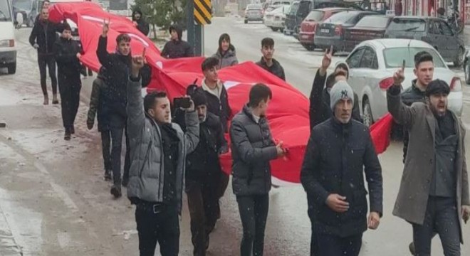 Karlı ve soğuk bir havaya rağmen yürüyüşlerini tamamlayan grup sloganlar atarak ilçe merkezinde yürüyüş yaptı. Daha sonra Atatürk anıtı önünde saygı duruşunda bulunan gençler, İstiklal Marşı'nın okunmasıyla dağıldılar.