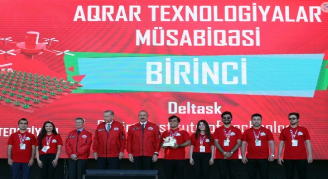 Cumhurbaşkanı Erdoğan, Azerbaycan Cumhurbaşkanı Aliyev ve Sancar, TEKNOFEST Azerbaycan'ın yarışmalarında dereceye giren 16 takıma ödüllerini verdi. Selçuk Bayraktar, Cumhurbaşkanı Erdoğan ve Azerbaycan Cumhurbaşkanı Aliyev'e plaket, Sancar'a da hediye takdim etti.