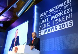 ‘Bu tesis bizim için gerçek anlamda uzaya ilk adım niteliği taşıyor" diyen Cumhurbaşkanı Erdoğan şöyle devam etti:"Türkiye 12 yıldır pek çok alanda hayata geçirilmiş olduğu ilklerinden birini de uzay çalışmaları alanında gerçekleştirmiş oluyor. Tarihte savunma sanayi konusunda aslında çok büyük bir müktesebatı olan bir milletiz. Yani bizi şu anda bulunduğumuz noktada görmeyin. Kendimizi böyle bir noktada görmeyelim. Aslında biz bunları başarmışız. Ama nedense patinajla biz geriye gitmişiz. Kadırgalarımızla denizde, toplarımızla karada destanlar yazdık. İstanbul’un fethi başta olmak üzere pek çok savaşta kendi geliştirdiğimiz ve ürettiğimiz silahlarımızla çok büyük başarılar kazandık. Birinci Dünya Savaşı’na geldiğimizde bu üstünlüklerimizi yitirmiştik, buna rağmen Kurtuluş Savaşımızı çok zor şartlarda ürettiğimiz veya yenilediğimiz silahlarla, cephaneyle kazandık. Cumhuriyetin kuruluşunun hemen ardından Gazi Mustafa Kemal’in talimatı ve desteğiyle başlatılan savunma sanayii hamlesi maalesef 1940’lı yıllardan itibaren akamete uğradı. Kurduğumuz uçak fabrikalarını, geliştirdiğimiz otomobilleri, motor fabrikalarını birer birer kapattık. 1926 yılında kurduğumuz tayyare ve motor Türk şirketi 1939 yılına kadar tam 112 uçak üretti. O dönemin şartlarında bu gerçekten muazzam bir başarıdır. Ama maalesef kapısına 1939 yılında kilit vuruldu. Rahmetle andığımız Nuri Demirağ’ın 1936’da başlattığı girişim 1943’te aynı akıbete uğradı. Şayet bu hamle devam etmiş olsaydı hiç şüphesiz bugün Türkiye dünyanın en önemli uçak üreticilerinden biri olurdu."