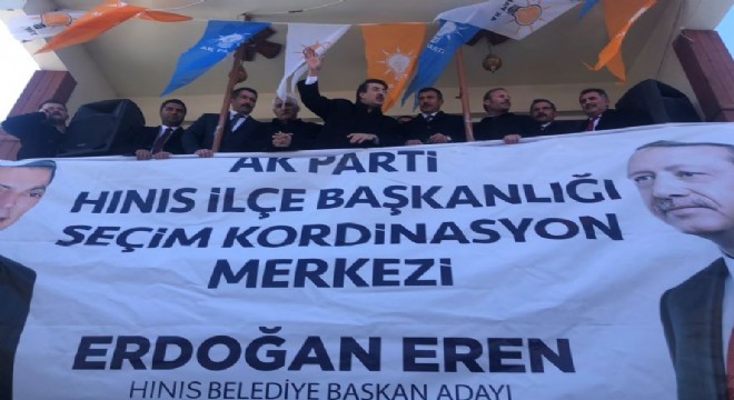 AK Parti Milletvekili İbrahim Aydemir, AK Parti ilçe Başkanı Mehmet Sönmez, Belediye Başkan adayı Erdoğan Eren, ilçe yönetim kurulu üyeleri, Belediye Meclisi adayları ve partililerle birlikte AK Parti Hınıs Seçim Koordinasyon Merkezi’ni hizmete açtı. 500’ü aşkın bir araç konvoyuyla karşılanan AK Parti heyeti, ilçede bir bayram havası yaşadı, Cumhurbaşkanı Recep Tayyip Erdoğan’a gösterilen sevgi ve saygı gösterisine ortak oldu.