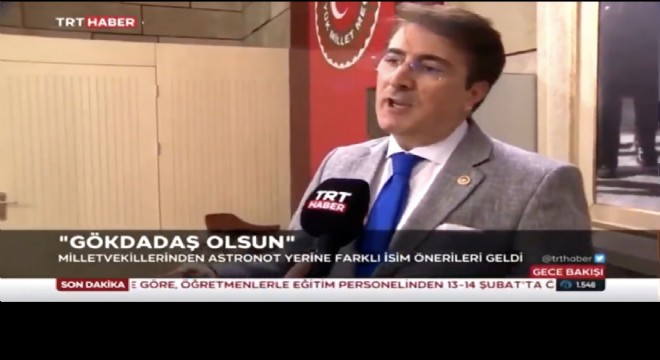 Basın toplantısı sonrasında TRThaber’’de değerlendirmelerde bulunan Milletvekili Aydemir, Milli Uzay çalışmalarının milletçe büyük sevinç ve gururla karşılandığını belirterek, ‘Astronot, kozmonot kavramları bizi ifade etmiyor. Sayın Cumhurbaşkanımızın yerli ve milli isim anlayışına, bir teklifle iştirak ediyor, astronot yerine ‘Gökdadaş’ ismini teklif ediyoruz. ‘ dedi.