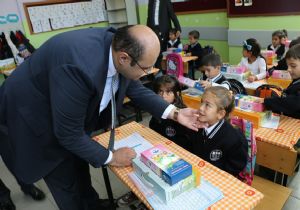 Daha sonra Kaymakam Öz ve Başkan Orhan öğrencilere okuma setleri ile diş bakımı ürünlerini dağıttılar. Okul idarecileri ve öğretmenler, eğitime katkılarından dolayı Kaymakam Öz ile Başkan Orhan’a teşekkür ettiler.