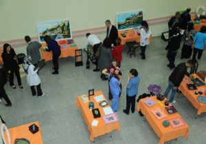 Erzurum Bölge Eğitim ve Araştırma Hastanesi fuaye alanında açılan "11. Geleneksel El Sanatları Sergisi’nde psikiyatri servisi hastaları tarafından yapılan 100’ün üzerinde ahşap boyama eser sergileniyor.