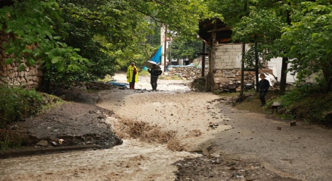 Tortum ilçesinde sağanak yağış sonrası cadde ve sokaklar sular altında kaldı, sel suları vatandaşların bahçelerini bastı.