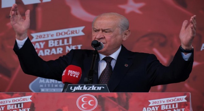 Türk Silahlı Kuvvetleri'nin terör örgüt PKK operasyonlarında kimyasal silah kullandığına yönelik iddialar hakkında da konuşan Bahçeli, "Geçtiğimiz günlerde Türk Silahlı Kuvvetlerine şerefsiz bir iftira atılmıştır. Kahramanlarımız Pençe-Kilit Harekatı’yla girilemez denilen yerlere girince, Zap kontrol altına alınınca terör örgütü PKK, Türk askerinin kimyasal silah kullandığını alçakça tedavüle sokmuştur. Biliyoruz ki, her hain korkaktır, yalancıdır, hainden dürüstlük de beklenmeyecektir. Hain, her fırsatta hainliğini ve hayasızlığını gösterecektir. Terör örgütünün son çırpınışları vahim yalanlarla örtülmek istenmektedir. PKK’nın namussuz iftirasına önce CHP’li bir milletvekilinden destek gelmiştir. Ardından HDP’li bir milletvekili Türkiye’yi soykırım yapmakla suçlamıştır. Hemen akabinde Türk Tabipleri Birliği Başkanı PKK’nın safına girmiş ve aynen demiştir ki: 'Belli ki, sinir sistemini tutan toksik-zehirli kimyasal gazlardan biri kullanılmış durumda' Sonra tepkiler çığ gibi yükselince 'Öyle bir şey demedim ki ben' sözleriyle kıvırmış, çark etmiştir. Öncelikle şunu ifade etmeliyim ki, bölücü terör örgütü PKK’nın iftirasına sarılıp şerefli Türk askerini suçlayan kim varsa teröristtir, şerefsizdir, haindir, suçludur, dökülen şehit kanlarının vebali onların üstündedir. Türkiye’ye soykırımcı diyen bir milletvekili müsveddesinin TBMM’de yeri olamaz, PKK’nın kara propagandasına nefes olan milletvekillerinin gazi meclisin çatısı altında olmaları hepimiz adına yıkımdır. Bu bölücü serserilerin, derhal TBMM’den atılarak mahkemeye çıkarılması şarttır, namus borcudur. Onların öğrencisi olmakla övünenlerin de hesabı sorulmalıdır. Türk Tabipleri Birliği’nin kapatılması, başkanının da bedel ödemesi haktır, hukuktur, devlet ve millet onurunun ertelenemez sorumluluğudur. Bunlara diyoruz ki, haram olsun, şart olsun, yaptıklarınız boğazınıza koca bir dert olsun. Yurt içinde ve yurt dışında teröristlerle kahramanca mücadele edilirken dibimize kadar yanaşmış teröristlere tahammül edemeyiz, sabır gösteremeyiz, bunların provokasyonlarını alttan alamayız. İp inceldiği yerden kopar. Teröriste merhamet vatana ihanettir. Zulme sessizlik mazluma hakarettir. Biz, Türkiye’nin, Türk milletinin, şerefli Türk askerinin tarafıyız. Caniye, eşkıyaya, bölücüye, demokrasi ve özgürlük kamuflajına bürünmüş düşman beslemelerine sonuna kadar karşıyız. Biz hakkın, halkın, hakikatin tarafıyız. Biz şehidin, gazinin, ciğeri yanmış anaların, dul gelinlerin, yetim yavruların tarafıyız. Biz, zemheride darıldığına Ağustosta su vermeyen tarafız. Biz, alma garibin bedduasını, çekersin ahını diyen tarafız. Biz, istiklalimizi can pahasına koruyacak tarafız. Biz Milliyetçi Hareket Partisi’yiz. Onların çağrısı kavgaya ve karanlığa, bizim çağrımız aydınlığa ve kardeşliğedir. Onların çağrısı kargaşaya ve karışıklığa, bizim çağrımız birliğe, dirliğe ve hep birlikte Türkiye olmaya çağrıdır. Onlar laftan anlamaz, onlar insanlıktan geçer not alamaz, nihayetinde arsız adama söz neylesin, kokmuş ete buz neylesin der geçeriz ve de Türk milletini huzura davet ederiz. Çağrımız büyük Türkiye’yedir. Çağrımız tam bağımsız lider ülke Türkiye’de kucaklaşmayadır" dedi.