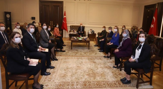 İçişleri Bakanı Süleyman Soylu, kadınlara muhtarlık ve köy ihtiyar heyetlerine seçme ve seçilme hakkı verilmesinin yıl dönümünde Türkiye Kadın Muhtarlar Derneği Başkanı Serpil Erenoğlu ve beraberindeki heyeti makamında kabul etti. Kadın muhtarların sayısının önümüzdeki dönemde daha da artacağını belirten Bakan Soylu, “Bugün Türkiye’deki bin 98 kadın muhtarımızı temsilen bu salgın döneminde neredeyse tüm toplantılarımızı temsili bir şekilde yapıyoruz. Temsilen burada bulunan tüm kadın muhtarlarımızı İçişleri Bakanlığında görmekten memnuniyet duyuyorum. Bin 98 sayısı, geçmiş dönemlere bakınca yükselmiş bir sayı. İnşallah önümüzdeki dönemlerde çok daha artacak bir sayı. Hem salgın döneminde ortaya koyduğunuz gayretlere hem muhtarlık görevini yerine getirirken hem de devletimizin, toplumumuzun karşı karşıya kaldığı bu süreçte muhtarlarımız çok büyük fedakarlıklar ortaya koydular. Gerek filyasyon ekiplerinin yönlendirilmesi olsun, gerekse denetim ekipleri, gerekse Vefa grupları olsun her birinde ayrı ayrı hakikaten muhtarlar kurumunun nasıl bir kurum olduğunu, toplumla nasıl bütünleştiğini, derdiyle dertlenebileceğini ortaya koydunuz. Sizlerin şahsında muhtarlarımızı tebrik etmek istiyorum. Bizim için önemli bir gurur kaynağı oldu" dedi.