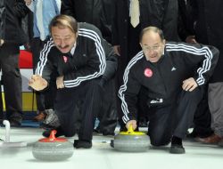 Bakan Özak ile Akdağ, 'Curling' salonunda tanıtım filmi için kamera karşısına çıktı.