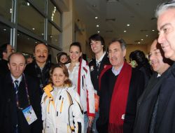 25. Dünya Üniversiteler arası Kış Oyunlarında Türkiye'ye tek madalya kazandıran Alper Uçar ve Alisa Agafonova'yı tebrik eden Spordan Sorumlu Devlet Bakanı Faruk Nafiz Özak, Sağlık Bakanı Recep Akdağ ile Kültür ve Turizm Bakanı Ertuğrul Günay, daha sonra toplu fotoğraf çektirdiler.