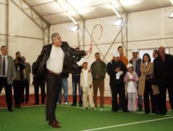 Konuşmaların ardından Bakan Yıldırım ve Özak, tenis kortunun açılışını gerçekleştirdi. Çocuklarla selamlaşan bakanlar, daha sonra raketleri ellerine alarak maç yaptılar. Bakan Yıldırım ve Özak, zaman zaman toplara vurmada zorlansalar da milli tenisçilerin verdikleri taktiklerle kıyasıya mücadele etti.