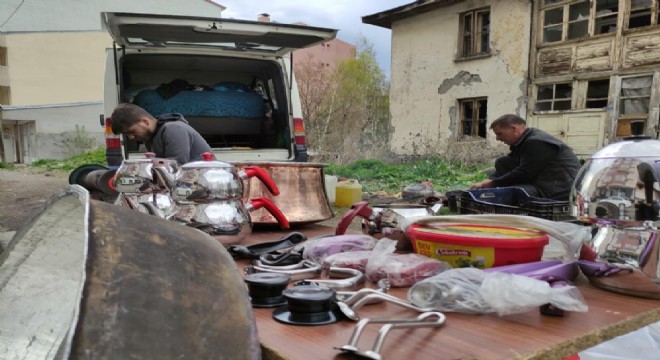 Erzurum’da babasından öğrendiği kalaycılık mesleğini sürdürebilmek için şehir şehir dolaşan Mehmet Tokgöz, bakır kaplara yeniden hayat veriyor.
