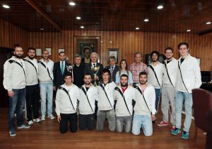 ÜNİLİG Türkiye birincisi olan ve Süper Lig`e yükselen Atatürk Üniversitesi Erkek Hentbol Takımı, Atatürk Üniversitesi Rektörü Prof. Dr. Hikmet Koçak’ı makamında ziyaret ederek, kazanılan kupayı Rektör Koçak’a takdim ettiler.