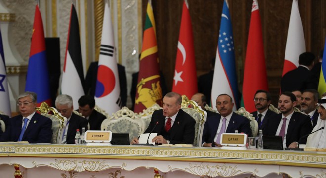 “Günümüz dünyasında maalesef düzen değil, düzensizlik hâkimdir” diyen Cumhurbaşkanı Erdoğan, sözlerine şöyle devam etti: “Yakın coğrafyamızda çatışmalar, iç savaşlar, vekâlet savaşları ve terörizmle mücadele ediyoruz. Asya’da İşbirliği ve Güven Arttırıcı Önlemler Konferansı, tüm bu sınamalar karşısında ortak adımlar atabileceğimiz bir platformdur. Türkiye olarak çevremizdeki dinamikleri barış, refah ve istikrar doğrultusunda şekillendirmenin gayretindeyiz. Komşumuz Suriye’de iç savaşın sona ermesi ve istikrarın sağlanması için elimizden geleni yapıyoruz. 4 milyona yakın Suriyeliyi şu anda ülkemizde misafir ediyoruz. Suriye’nin geleceğini tehdit eden DEAŞ ve PKK-YPG terör örgütlerine karşı yaptığımız sınır ötesi operasyonlarla çok ağır darbeler indirdik. 4 bin kilometrekareden fazla alanı terör örgütlerinin işgalinden kurtardık. 330 bin Suriyeli sığınmacının tekrar kendi topraklarına, kendi vatanlarına dönmelerini sağladık.”