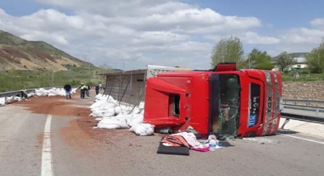 Kaza, bugün sabah saatlerinde Bayburt - Erzurum karayolunun 50. kilometresi Lolanlı Boğazı mevkiinde meydana geldi. Alınan bilgiye göre, 23 AAS 939 plakalı tır sürücüsünün direksiyon hâkimiyetini kaybetmesi üzerine virajı alamayarak yan yattı. Kazada sürücü yaralanırken tırın üzerindeki çuvallar yola saçıldı. Trafik ekipleri kaza mahallinde incelemede bulunarak yol güvenliği sağlandı.