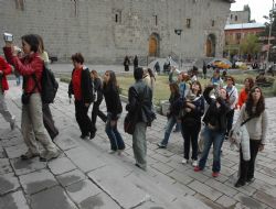 Ramazan Bayramı tatilini tarihi ve kültürel yerleri ziyaret ederek geçirmek isteyen yerli turist kafilesi Erzurum’da Çifte Minareli medreseye akın etti.