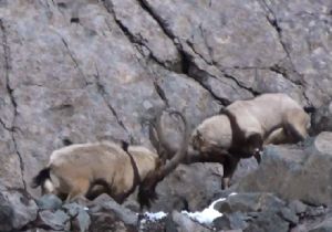 ERZURUM (İHA) - Grup liderliği için kayalık alanda saatlerce kıyasıya kavga eden iki av tekesi, avcılar tarafından görüntülendi.
