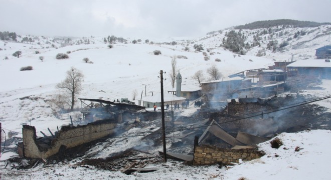 Gece yarısında bir evde sobadan çıktığı tahmin edilen yangın rüzgar ve fırtınanın da etkisiyle bir anda tüm köyü sardı. 16 ev ve ahırın kullanılamaz hale geldiği yangın sonrası onlarca aile sokakta kaldı.