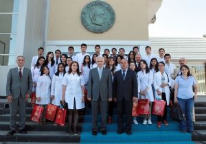 Nahçıvan Devlet Tıp Üniversitesi`nden üç öğretim elemanı ve 27 öğrencisi, staj yapmak üzere Atatürk Üniversitesi`ne geldi. Diş Hekimliği, Tıp ve Eczacılık fakültelerinde gelen öğrencileri, Atatürk Üniversitesi Rektörü Prof. Dr. Hikmet Koçak makamında kabul etti.