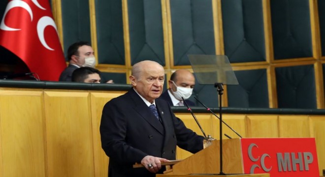 Türkiye’nin bugünkü haliyle kendi sorunlarını ihmal etmeden uluslararası alanda söz sahibi olmanın hedefine kilitlendiğini söyleyen Bahçeli, “Yükselişimizden rahatsızlık duyulmasının yanı sıra, maruz kaldığımız ekonomik, siyasi ve diplomatik sorunların asıl nedeni de budur. ABD ve diğer küresel güçlerle kurulan ilişkilerde direnç gösteren, dirayet sergileyen, inisiyatif üstlenen, öne çıkan, inançla direnen, ben de varım diyen bir Türkiye duruşu malumu olduğumuz ülkelerin uykularını kaçırmaktadır. Emperyalizmin katarına eklemlenen güçler kuşatmayı yaran, kumpası yıkan Türkiye’den ürkmektedir. Biliyorlar ki, uyanan devin ayağına pranga vurmak, boynuna tasma geçirmek dünyanın tersinden dönmesini istemek kadar ahmaklıktır, aptallıktır, saçmalıktır. Türkiye’yi dikkate almadan yapılan tüm hesaplar bozulmaya, buruşturulup atılmaya mahkûmdur. Doğu Akdeniz’den Kafkaslar’a, Ortadoğu’dan Balkanlara, Afrika’dan Avrupa’ya Türkiye her yerdedir, nitekim adaletin yanındadır, insaniyetin safındadır, hakça paylaşımın, haysiyetle yaşamanın tarafındadır. Hakkımızı hiç kimseye yedirmeyeceğiz. Hukukumuzu hiç kimseye çiğnetmeyeceğiz. Onurumuza düşkün bir millet olarak milli bekamızla asla oynatmayacağız. İşte muhatabı olduğumuz sıkıntıların kaynağı da burada aranmalıdır. Bizim ABD’den beklentimiz Türkiye’yi küçük görmemesi, küçümseme yanlışına düşmemesidir. Şayet dost isek buna göre davranmalıdır, şayet müttefik isek bunun gereği yapılmalıdır, yok adı konulmamış, ilanı yapılmamış düşman kamplara ayrılmışsak, bunu da bilmemiz hakkımızdır. Tarih boyunca Türk milletinin dostluğu aranmış ve beşeriyet için güven uyandırmıştır. Düşmanlığı ise her zaman korku saçmıştır. Bizim duruşumuz merttir, varlığımızın özü de sözü de birdir, herkes için senettir. Sahnenin önünde kucaklayıp, arka tarafta kurşun atmak namerdin özelliğidir. Türk milleti hiçbir zaman namerde eyvallah etmemiş, muhtaç düşmemiştir. Neysek oyuz, göründüğümüz gibi oluruz, olduğumuz gibi de görünürüz. Ölürsem şehit, kalırsam gazi diyen bir milletin diz çöktüğü, aman dilendiği, aman sen de dediği duyulmuş, görülmüş şey değildir. Bana dokunmayan yılan bin yıl yaşasın demedik, bundan sonra da demeyeceğiz. Böylesi bir çekingenliği ve çekimserliği en başta ecdadımıza anlatamayız, tarihimize anlatamayız, fıtratımıza yakıştıramayız, Allah muhafaza şühedanın nurlu yüzüne bakamayız. Yılanı gördük mü ezeriz, ezemezsek kovarız, eğer kovamazsak da kaçmayı düşünmeyiz, imanla karşı çıkarız, irfanla karşı dururuz, eninde sonunda zalimlerin zehrini kursaklarına aynen şırınga ederiz. Dostluğumuz maskeli, mesafeli, muhataralı, muvazaalı, mukaveleli değildir; kaldı ki doğrudur, tutarlıdır, güvenilirdir, adam gibi adamlığın tezahürüdür. ABD yönetiminde görmeyi arzu ettiğimiz tavır da aynısıyla bu olacaktır. Daha adil, daha eşitlikçi, daha hakkaniyetli, daha paylaşımcı, daha huzurlu, daha insani, daha barışsever bir dünya istiyorsak hakim küresel sistemi A’dan Z’ye sorgulamamız lazımdır. Haklının güçsüz, güçsüzün haklı olduğu adaletsizlik sonlanmalıdır. Cemiyet-i Akvam’dan beri söylenen bu olsa da, gerçekleşen maalesef tam tersidir” dedi.
