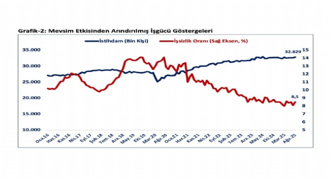 "İşsizlik oranı Ağustos ayında bir önceki aya göre 0,4 puan artışla yüzde 8,5 seviyesinde gerçekleşmiştir"