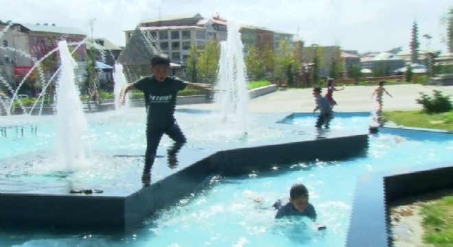 Erzurum’da son zamanlarda artan hava sıcaklığı nedeniyle çocuklar çareyi süs havuzlarında serinlemekte buldu. Yasak ve tehlikeli olmasına rağmen havuza giren ve etrafında güneşlenen çocuklar, fıskiye altında oyunlar oynadı. Elbiseleriyle süs havuzuna giren çocuklar, havanın çok sıcak olması nedeniyle havuza girdiklerini ifade ettiler.