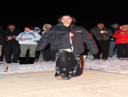 Antalya’dan yılbaşı tatili etkinlikleri kapsamında Erzurum’a gelen oryantal Mine Saraç, Palandöken Kayak Merkezi’nde şov yaptı. Çıplak ayaklarıyla kar üzerinde yürüyüp, daha sonra yakılan ateş etrafında şov yapan Saraç, kıvrak dansıyla beğeni topladı. Bir ara soğuktan dişleri birbirine çarpan oryantale turistler montlarını vererek ısınmasını sağladı.