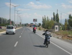 ERZİNCAN (İHA) - Erzincan’da motosikletli gençler ölümle adeta dans ediyorlar. Birkaç kişilik guruplar oluşturan gençler, ana yol üzerinde son sürat motosikletlerin üzerinde kasksız ve korumasız yarışıyorlar. Erzincan - Erzurum Karayolu’nun Akyazı Mevki’nde bir araya gelen gençler ölümle dans edercesine birbirleriyle yarışırken adeta kazalara davetiye çıkartıyorlar. Motosikletlerin üzerine yatarak kimi zamanda adeta uçarcasına yarışan bu gençleri görenler "Pes doğrusu" demekten kendilerini alamıyorlar. Yarış yapılan motosikletlerin çoğunun plakası dahi bulunmuyor. Koruyucu kask dahi takmayan gençler, ailelerinden habersiz trafiğe çıkıyor.