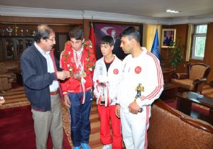 Palandöken Belediyesi’nin başarılı boksörleri Milli Boks Antrenörü Gürkan Sönmez ile birlikte Başkan Bulutlar’ı makamında ziyaret ederek başarılarını paylaştı. Genç sporcuya başarılarının katlanarak devam etmesi için nasihatlerde bulunan Palandöken Belediye Başkanı Orhan Bulutlar, kazandığı bu başarısından dolayı Ahmet Kaya’ı altınla ödüllendirdi. Palandöken ilçesinin son dönemlerde ismini yetişen genç sporcularla da duyurmaya başlamasından dolayı onur ve gurur duyduklarını ifade ederek bunların bir tesadüf olmadığını Palandökenin her yönü ile ayrıcalıklı bir ilçe olduğunu belirten Başkan Bulutlar; “Yapılan araştırmalar sonucun da Palandöken ilçesi havasıyla spor ilçesi olduğunu tescilleyerek yurt içine ve yurt dışına kendisini duyurmuş her yönden şanslı bir ilçe. Palandöken ilçesin de bir çok gençte cevher var. Ancak bu güne kadar bu cevherler desteklenemediği için bir çokları göz ardı edilmişti. Biz elimizden geldiğince eğitime ve spora destek vermeye devam edeceğiz. Salon sporları bence en çok desteklenmesi gereken sporlardan bir tanesi. Salon sporları sayesinde çok daha ekonomik koşullarla ve farklı şartlarda şehrimizin adını duyurma imkanına sahibiz. Bu gün bu başarıyı bize getiren genç kardeşimiz, onu çalıştıran değerli hocamız Gürkan Sönmeze, onu destekleyen ve her daim arkasında duran ailesini kutluyor ve teşekkür ediyorum. Kendisine başarılarının devamını diliyorum. Umarım bu azmi ve kararlılığı ile daha çok başarıların altına imza atar zaten aldığı bu başarı dan dolayı olimpiyat kadrosuna da dahil edilmesi bizeleri ayrıca sevindirmiştir.” dedi. Öte yandan Palandöken Belediyesini bir başka olimpiyat kadrosundaki sporcusu olan 50 kiloda Ahmet Otçu ise Kazakistan’da Yapılan Uluslararası Başbakan Nur Sultan Nazar Bayev Yıldız Erkekler Boks Turnuvasında sakatlanarak musabakalar dan ayrılmak zorundak kalması talihsizlik olarak yorumlandı.