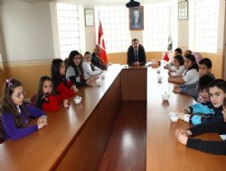 Öğrenciler, ziyarette Belediye Başkanı Orhan Bulutlara, yanlarında getirdikleri hediyeleri takdim ederken, Bulutlar, ise daha önceden hazırlanan kitaptan oluşan hediyeleri öğretmen ve öğrencilere verdi.