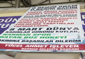 Erzurum Buz Arenada Genç Ankaralılar Spor Kulübü ile Narman Spor Kulübü arasında oynanacak maç öncesinde Narman Belediye Başkanı Yücel Ahmet İşleyen tarafından yaptırılan Kadınlar Günü pankartı salona asıldı. Sporcular Kadınlar Gününü kutlayarak maça başladılar.