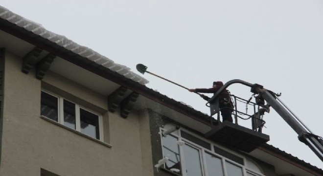 Türkiye'nin en soğuk illerinden Erzurum’da, kar yağışı ve dondurucu soğuklarla birlikte çatılarda oluşan buz sarkıtları itfaiye ekipleri tarafından kırılıyor.