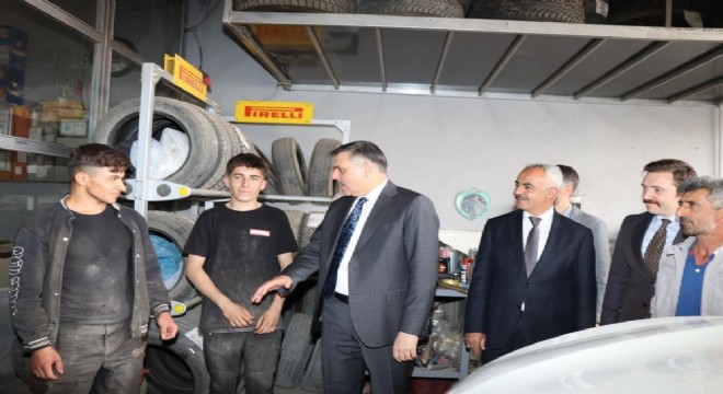 Oltu'da bulunan sanayi sitesindeki dükkânlarda incelemelerde bulunan Erzurum Valisi Mustafa Çiftçi, esnafın çay ikramını geri çevirmedi ve onlarla sohbet etti.