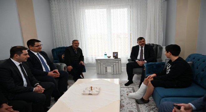Vali Mustafa Çiftçi, geçtiğimiz hafta cuma namazı sonrası düşerek ayağı kırılan Aziziye Fatih Sultan Mehmet İmam Hatip Ortaokulu 7. Sınıf öğrencisi Sefa Güloğlu'na geçmiş olsun ziyareti gerçekleştirdi.