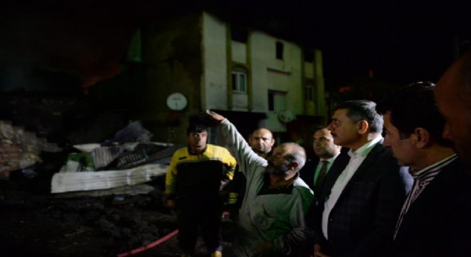 Vali Mustafa Çiftçi, 8 evin yandığı Pazaryolu ilçesine bağlı Konakyeri Mahallesi'nde incelemelerde bulundu.