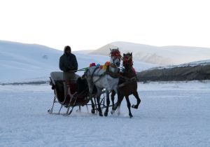 Ardahan'da soğuk havanın etkisiyle buz tutan Çıldır Gölü üzerinde atlı kızak keyfi devam ediyor. Donan Çıldır Gölü'nde gezinmek isteyen yerli ve yabancı turistler, atlı kızaklara binerek, göl üzerinde kızak yapma keyfini doyasıya yaşıyor.