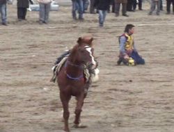 İHA/Erzincan'ın Düşman İşgalinden Kurtuluşu'nun 92. Yıldönümü kutlamaları çerçevesinde düzenlenen cirit gösterisinde bir anda dengesini kaybeden ciritçi kendini yerde buldu.