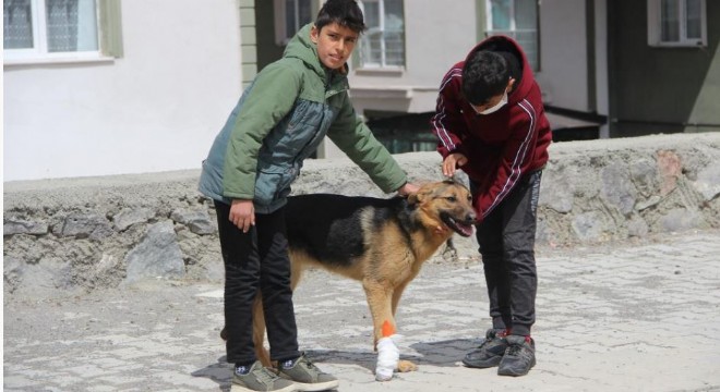Erzurum’da kimliği belirlenemeyen kişiler tarafından işkence edildikten sonra sakat kalan köpeğe mahallenin çocukları sahip çıktı.