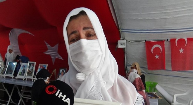 PKK’da büyük bir çözülme olduğunu inşallah kendi çocuklarının da seslerini duyup güvenlik güçlerine teslim olacağını vurgulayan Aydın, “Oğlum ve yanında bulunanlar beni duyuyor ve görüyor ise baksınlar 18 çocuk güvenlik güçlerine teslim oldu ve ailesine kavuştu Sizi orada korkutuyorlar, size diyorlar ki ‘devlet size işkence yapacak, sizi öldürecek’ o yüzden inanmayın onlara bu kesinlikle yalandır. Biz hepimiz bu ay yıldızlı bayrağın altında doğduk ve bu ay yıldızlı bayrağın altında da öleceğiz. Biz devletimizden razıyız, Allah devletimize zeval vermesin. Cumhurbaşkanımız ile İçişleri Bakanımıza teşekkür ediyoruz. Kendi çocuklarıymış gibi bizim çocuklarımızın üzerinde çok duruyorlar. 18 evladımız geldi ve biz bundan eminiz ki çocukların hepsi güvenlik güçlerimize teslim olacaklar. Bu hasretlikte bir an önce son bulur. Çocuklarımız gelinceye kadar hiç birimiz bu HDP İl Başkanlığı önünde ayrılmayacağız. HDP milletvekillerinde de biraz vicdan var ise Kürt ailelerine burada sahip çıkarlar, Kürt ailelerine burada laf söylemezler. Bizlere hakaret ediyorlar, bizlere laf söylüyorlar ve bizlere PKK işareti yaparak el sallıyorlar. Ne yaparlar ise yapsınlar biz bu eylemi sonlandırmayacağız. Sonuna kadar burada olacağız, ya çocuklarımız ya da biz burada öleceğiz” dedi.