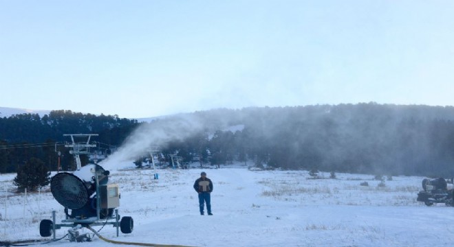 Ardahan'da beklenen kar yağmayınca Uğurludağ Kayak Merkezinde suni kar yağdırma sistemi devreye sokuldu.