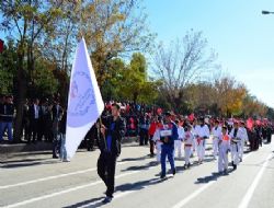 ERZURUM (İHA) - Gençlik Hizmetleri ve Spor İl Müdürlüğü’nün çeşitli spor branşlarında faaliyet gösteren sporcuları ve antrenörleri 29 Ekim Cumhuriyet Bayramı’nda geçit töreninde ayakta alkışlandı. Kayaktan, judoya, karateden, taekwondaya, kick bokstan atletizme, basketboldan, voleybola, güreşten, masa tenisine, halk oyunlarından, izciliğe, buz pateninden, curlinge, short tracktan, buz hokeyine kadar bir çok spor branşında faaliyet gösteren Gençlik ve Spor İl Müdürlüğü’nün sporcuları, Cumhuriyet Bayramı’ndaki tören geçitlerinde ilgi odağı olmayı başardı.