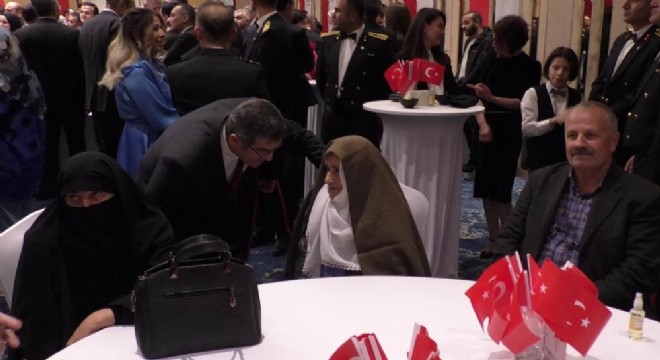 Vali Memiş tarafından 99 yaşındaki Yaldız nineye çiçek takdim edildi. Resepsiyona davet edildiği için duygulanan Yaldız Alagöz, “Allah’ım yurtsuz, vatansız koymasın. Şehitlerimize Allah rahmet eylesin, hepiniz iyi günler göresiniz” dedi.