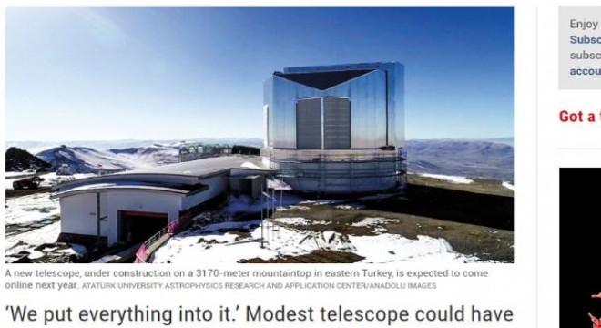 Bu kapsamda Science, “Türk bilim adamları, gelecek yıl çevrimiçi olması beklenen 4 metrelik optik ve kızılötesi teleskoba sahip Doğu Anadolu Gözlemevinin (DAG) tamamlanmasını sabırsızlıkla bekliyor” dedi.