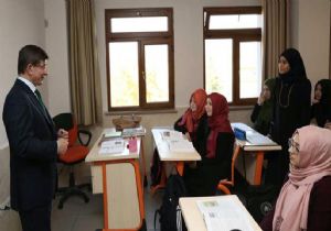 Davutoğlu, Tevfik İleri Anadolu İmam Hatip Lisesi'ni ziyaret ederek, coğrafya ve Türkçe derslerine girdi. Öğrencilere coğrafya alanında sorular yönelten Davutoğlu, Türkçe dersinde ise anadilin önemine vurgu yaptı.