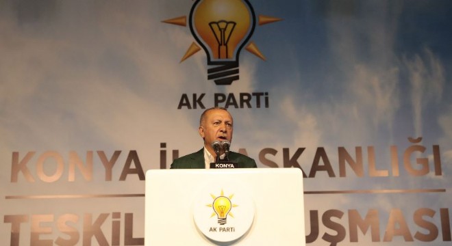 "Biz zaferden değil seferden sorumluyuz" diyerek davayı bugünlere kadar getirdiklerini kaydeden Cumhurbaşkanı Erdoğan, “18 yıllık bu uzun ince meşakkatli yolda nefesi kesilenler çıktı. Bu yolculukla hırs ve kibirlerinin kurbanı olanlar, böbürlenenler, başarıyı kendinden menkul görenler oldu. Sahada çalışmak varken bir kenara çekilip fil dişi kulelerde ahkam kesenler oldu, nefislerine yenik düşenler oldu. Biz kaderin tek sahibinin Allah olduğuna inanarak yolumuza sizlerle devam ettik ve ediyoruz. Bugün hava limanını meydana kadar yol boyunca binlerce Konyalı kardeşimizin bizleri nasıl karşıladığını gördük. Allah’ın izni ile bundan sonra da bu birliğimiz, bu beraberliğimiz, dayanışmamız gurura mahkum olmadan, hırsızımı başımızın üstüne çıkarmadan, onu ayaklarımızın altına alarak, nefsimizi ayaklarımızın altına alarak milletimizin huzurunda el pençe durmaya devam edeceğiz. Zira biz, sadece rükû ve secdede eğileceğiz. Bunun dışında kimsenin huzurunda eğilmeyeceğiz. Fitne ateşinin yakılmasına kesinlikle rıza göstermeyeceğiz. Bizim için esas olan Allah’ın rızasıdır. Milletin rızası ve hayır duasıdır. Bizim için esas olan milletimizin ne dediği ve ne beklediğidir. 7 Ekim’de 7. olağan büyük kongre sürecimizi başlatıyoruz. 31 Mart seçimlerinde sandıktan çıkan tablo bu süreçte bizim en önemli referans kaynağımız olacak. Milletimiz bize hem 24 Haziran 2018’de, hem de 31 Mart’ta önemli mesajlar vermiştir. Şahsım başta olmak üzere hiç birimizin bunlara kulak tıkama hakkı yoktur. Üyelerimizden eksilenler varsa sebebini araştırmalı, yeni üye kazanma çalışmalarını da kesintisiz sürdürmeliyiz. Kağıt üzerinde üyemiz görünen ama gönlünü başka bir yerlere vermiş olanları da ayıklamalıyız. Kimseyi ötekileştirmeyeceğiz. Milletimizle irtibatımızı ne kadar güçlü tutarsak parti olarak geleceğimize o kadar güvenle bakabiliriz. Yolumuz uzun, yükümüz ağırdır. Tüm birimlerimizden bu hassasiyetle gece gündüz çalışmasını bekliyorum. Sadece Allah için seveceğiz. Makam, para, pul için değil. Bu düşüncelerle ne dedik, Rabia. Tek millet, tek bayrak, tek vatan, tek devlet. Bunun için de bir olacağız, iri olacağız, diri olacağız, kardeş olacağız, hep birlikte Türkiye olacağız” diye konuştu.