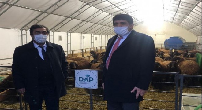 Daha sonra, DAP İdaresi’nin Tarımsal Eğitim ve Yayım Programı dahilinde, öğrencilerin yetiştirilmesi, bölge çiftçisinin eğitilerek Morkaraman ırkının yaygınlaştırılmasını amaçlayan “Morkaraman Yetiştiriciliğinde Yavru Veriminin Artırılması” projesi kapsamında yapımı tamamlanan ve içerisinde çadırdan yapılma koyun ağılı, yem deposu, damızlık hayvanların bulunduğu bölümlerde de incelemelerde bulundu.