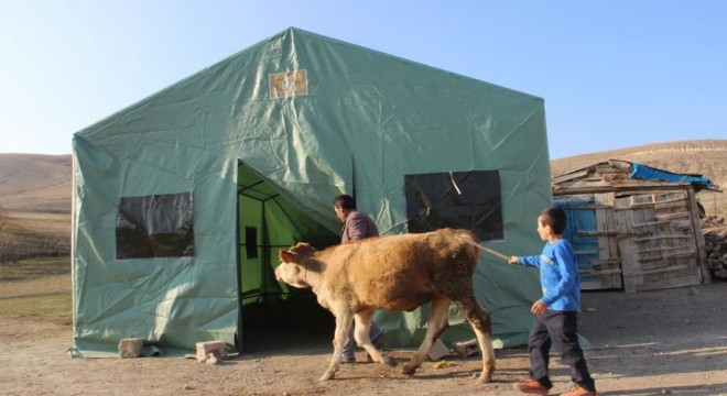 Erzurum’un Köprüköy ilçesinde meydana gelen 5.1 büyüklüğündeki depremde hasar gören 47 ahırdaki büyükbaş ve küçükbaş hayvanlar için çadırlar kuruldu.