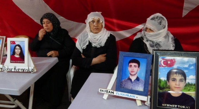 Terör örgütü PKK tarafından dağa kaçırılan çocukları için Diyarbakır annelerinin HDP il binası önünde sürdürdüğü oturma eylemi, bin 213’üncü gününde de devam ediyor.